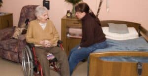 An old woman fell from her wheelchair in a nursing home